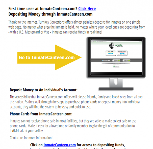 On Inmate Canteen, using the inmate's personalized name number, visitors can also send money, order commissary, text, and email the inmates through this system.